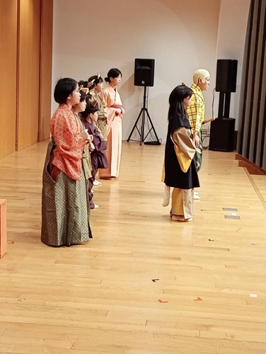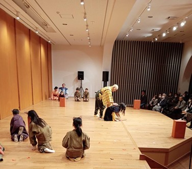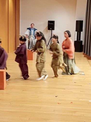 兵六会を立ち上げて5年がたち、日本伝統芸能「狂言」とやっと出会うことができ、京都の茂山狂言会の網谷狂言師が脚本を書いてくださいました。師南を受けながら、子どもたちを中心に、これまでお稽古を重ねてまいりました。